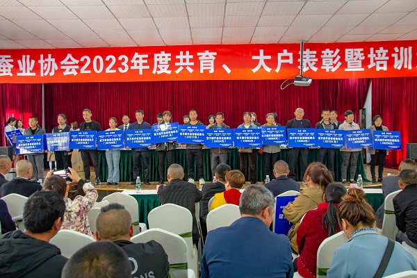 会上,公司总经理薛忆深入分析了当前行业形势,公司副总经理贾艳芳代表协会作2023年度工作总结,并解读2024年蚕种订种政策,站长田兴维、董明喜分别就桑园管理、小蚕共育等进行技术培训,协会秘书长、公司监事曾红代表公司对全区2023年度先进共育户、大户进行表彰,并现场颁发奖金460余万元,共育兼返包大户文红、刘世刚、刘福蓉,返包大户陈司法、夏荣保、李爱国、钟锐等7人代表全区共育户、返包大户谈工作体会。