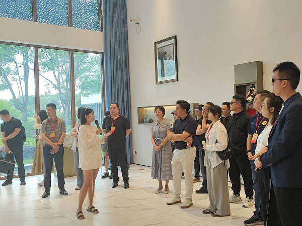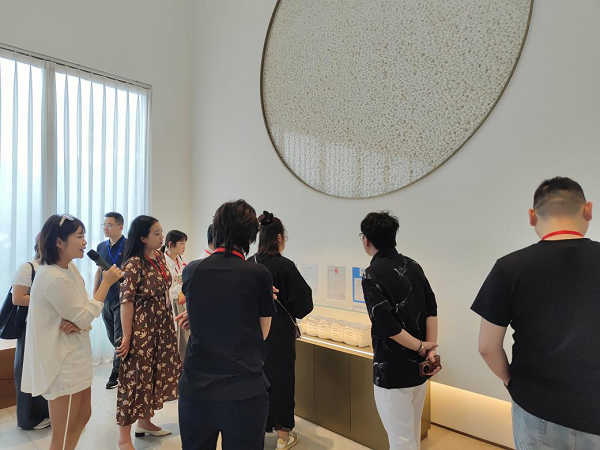 在薛忆的带领下,侨青代表团先后参观了天虹蚕工场、“千鹤丝语”蚕桑文化展示中心等地,深刻感受到天虹丝绸将传统蚕桑技艺与现代科技融合的创新路径。薛忆以“一棵桑树、一只蚕、一根丝”为脉络,详细讲述天虹丝绸“公司 基地 农户”的三产融合模式——通过科技赋能标准化生产、文化激活品牌价值、生态拓展文旅体验,助力乡村振兴发展。