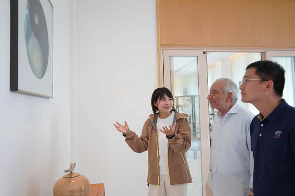 在薛忆的陪同下,kamaljit bawa院士一行参观了“千鹤丝语”蚕桑文化展示中心及蚕桑生产基地。在杨家绣坊,薛忆重点介绍了国家级非物质文化遗产——蜀绣,讲解其以细腻针法、自然写意、色彩层次丰富著称的独特艺术价值。bawa院士对蜀绣的精湛刺绣技艺表示由衷赞叹,认为其不仅展现了中国传统工艺的高度,也体现了自然与文化深度融合的美学追求。
